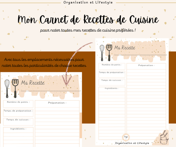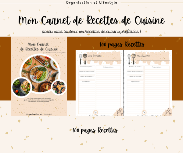 - 100 fiches recettes prêtes à être renseignées, vous offrant un espace dédié pour chaque détail.